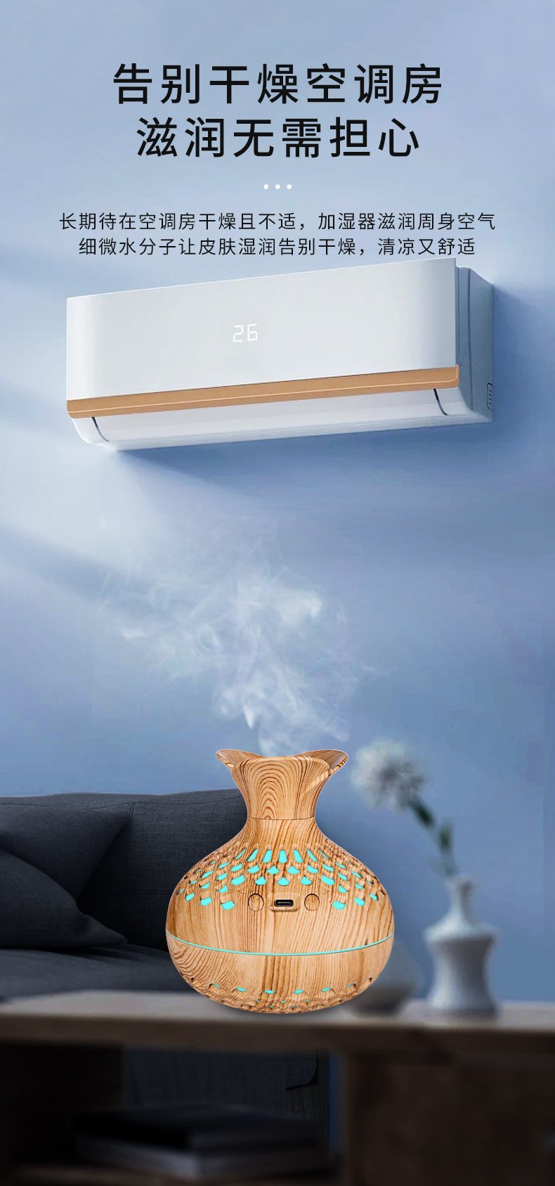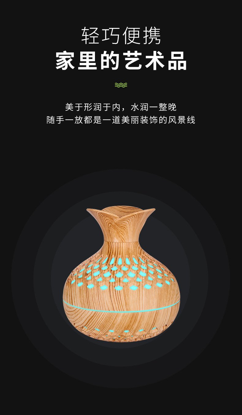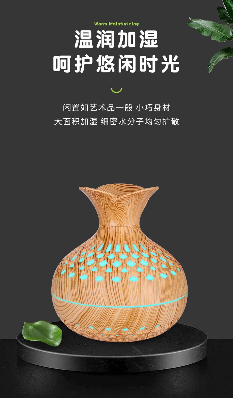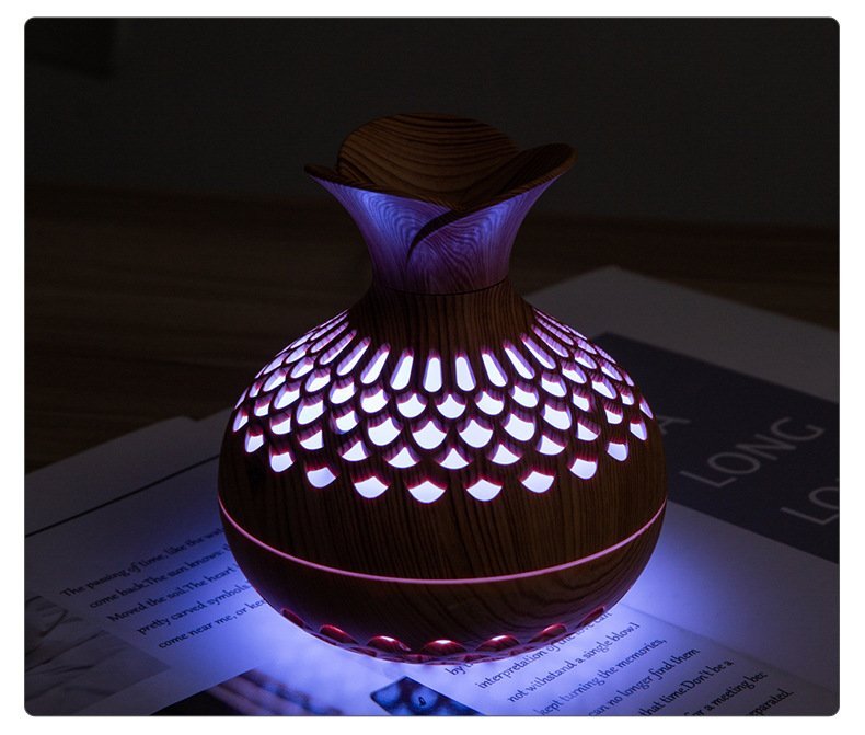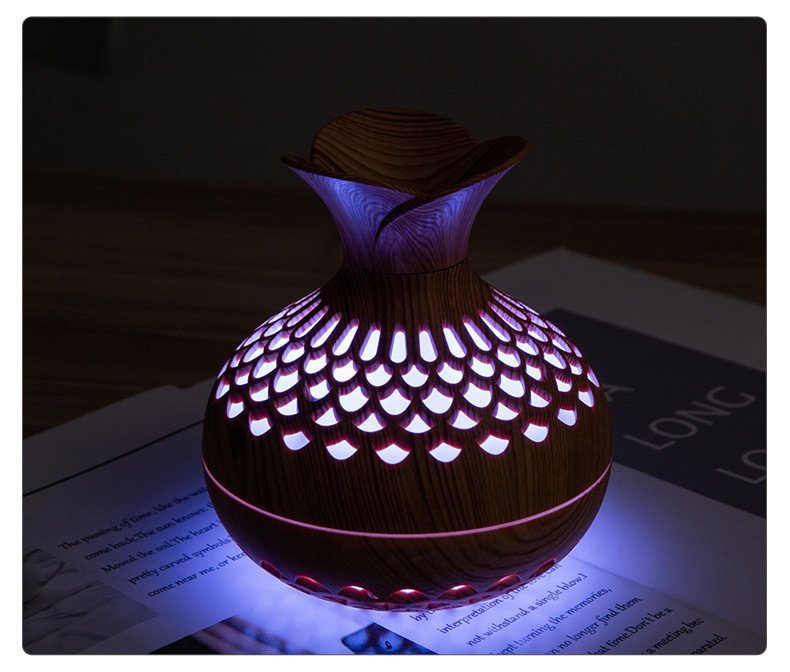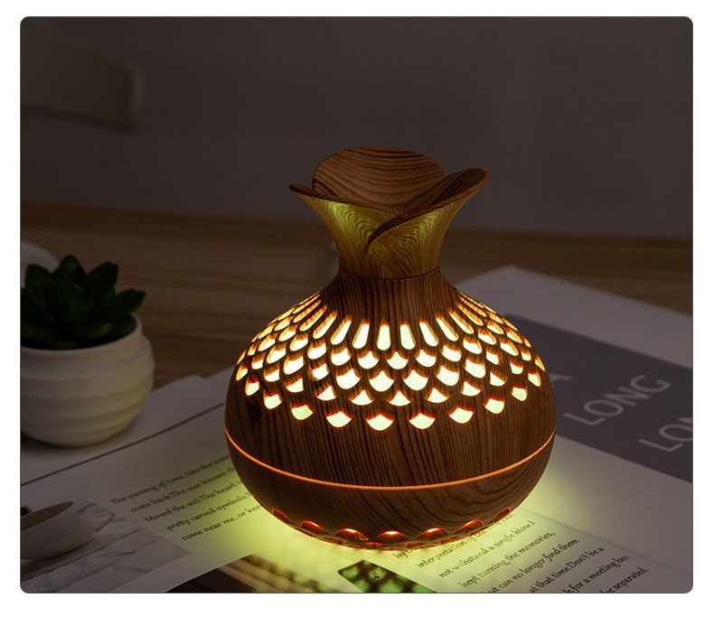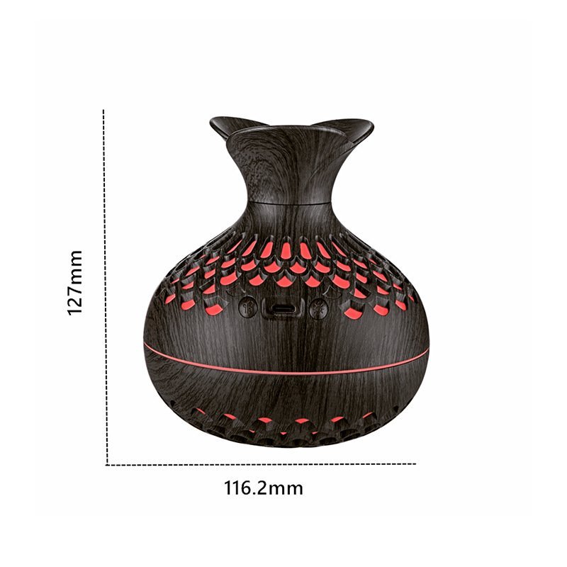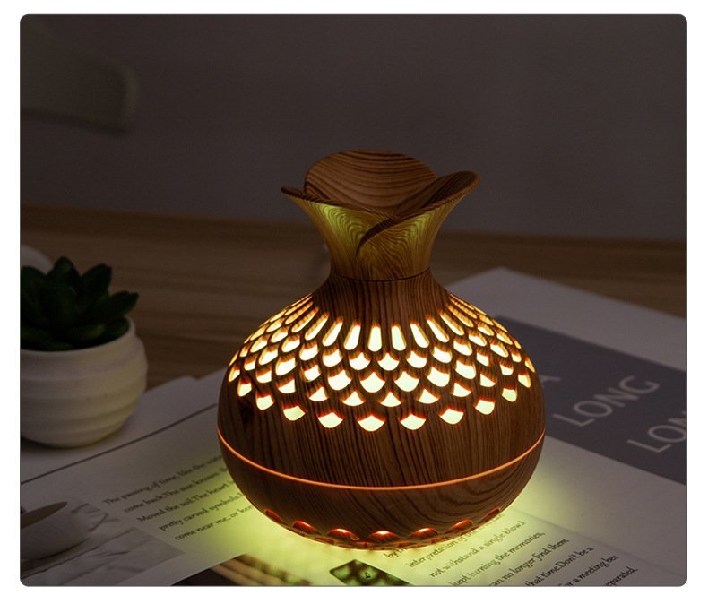 Transform any small space into a relaxing, spa-like retreat with this beautifully crafted aromatherapy diffuser. Designed with a natural wood-grain finish and a sculpted vase silhouette, it blends effortlessly into bedrooms, offices, and cozy corners. Its ultra-fine aroma mist helps reduce stress, freshen the air, and create a soothing atmosphere without overwhelming the room.