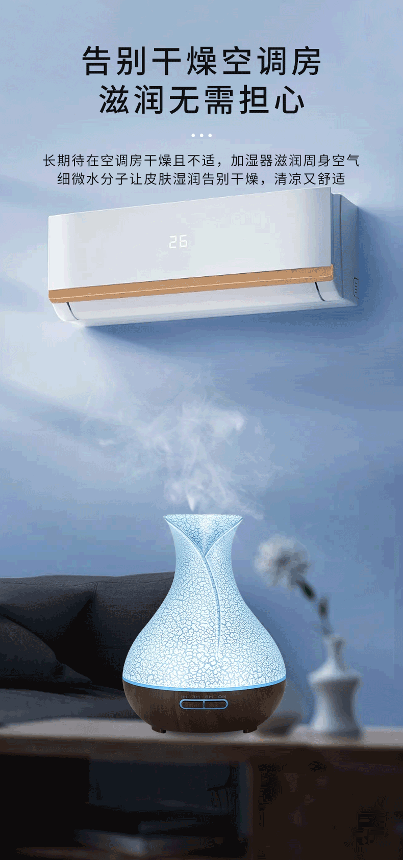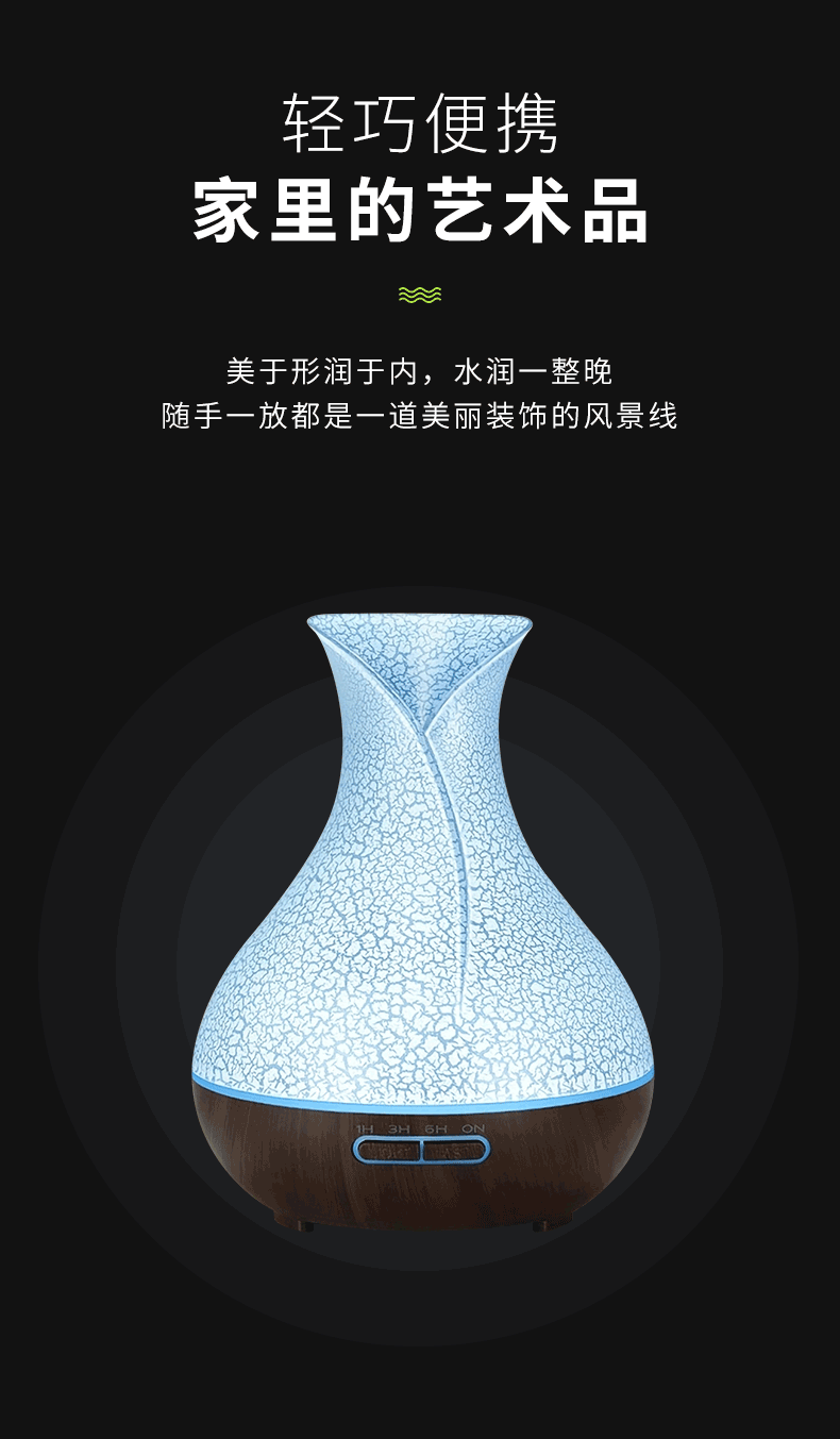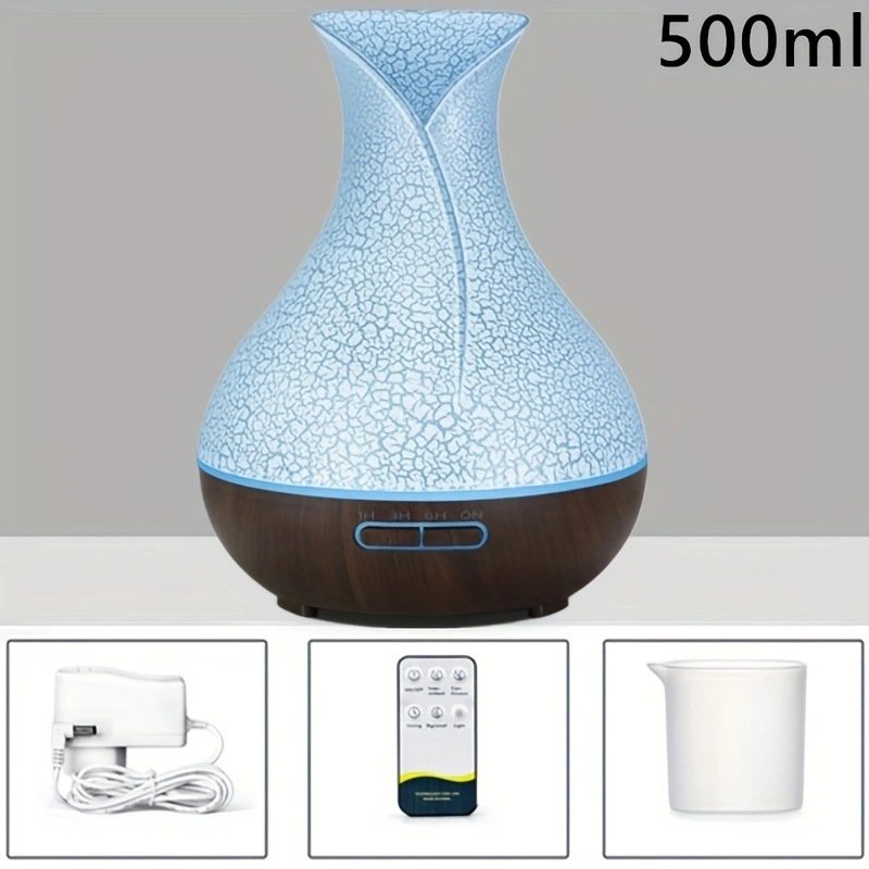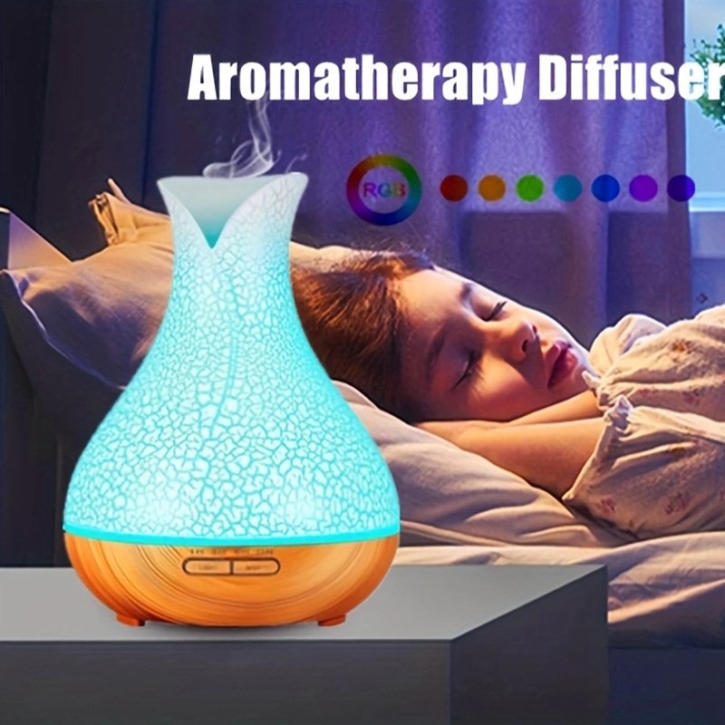 Transform your home atmosphere with this beautifully designed crack-glaze aromatherapy diffuser. Its sculpted vase-style shape and illuminated crack pattern create a warm, artistic glow that instantly enhances the aesthetic of any room. With a compact tank under 0.5L and efficient ultrasonic misting, it’s ideal for adding fragrance and gentle moisture to small and medium-sized spaces.