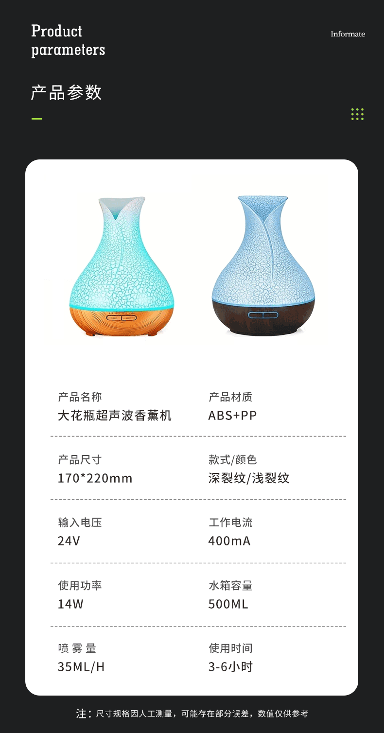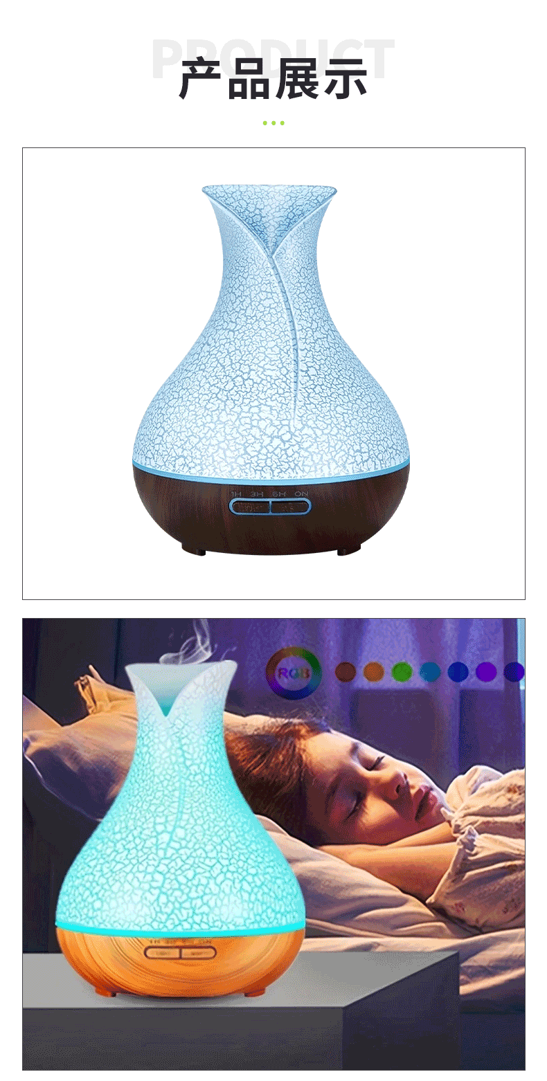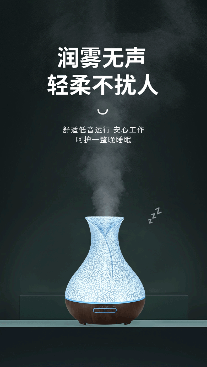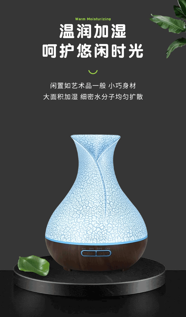 Transform your home atmosphere with this beautifully designed crack-glaze aromatherapy diffuser. Its sculpted vase-style shape and illuminated crack pattern create a warm, artistic glow that instantly enhances the aesthetic of any room. With a compact tank under 0.5L and efficient ultrasonic misting, it’s ideal for adding fragrance and gentle moisture to small and medium-sized spaces.